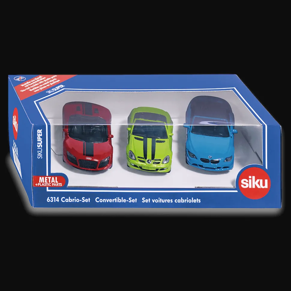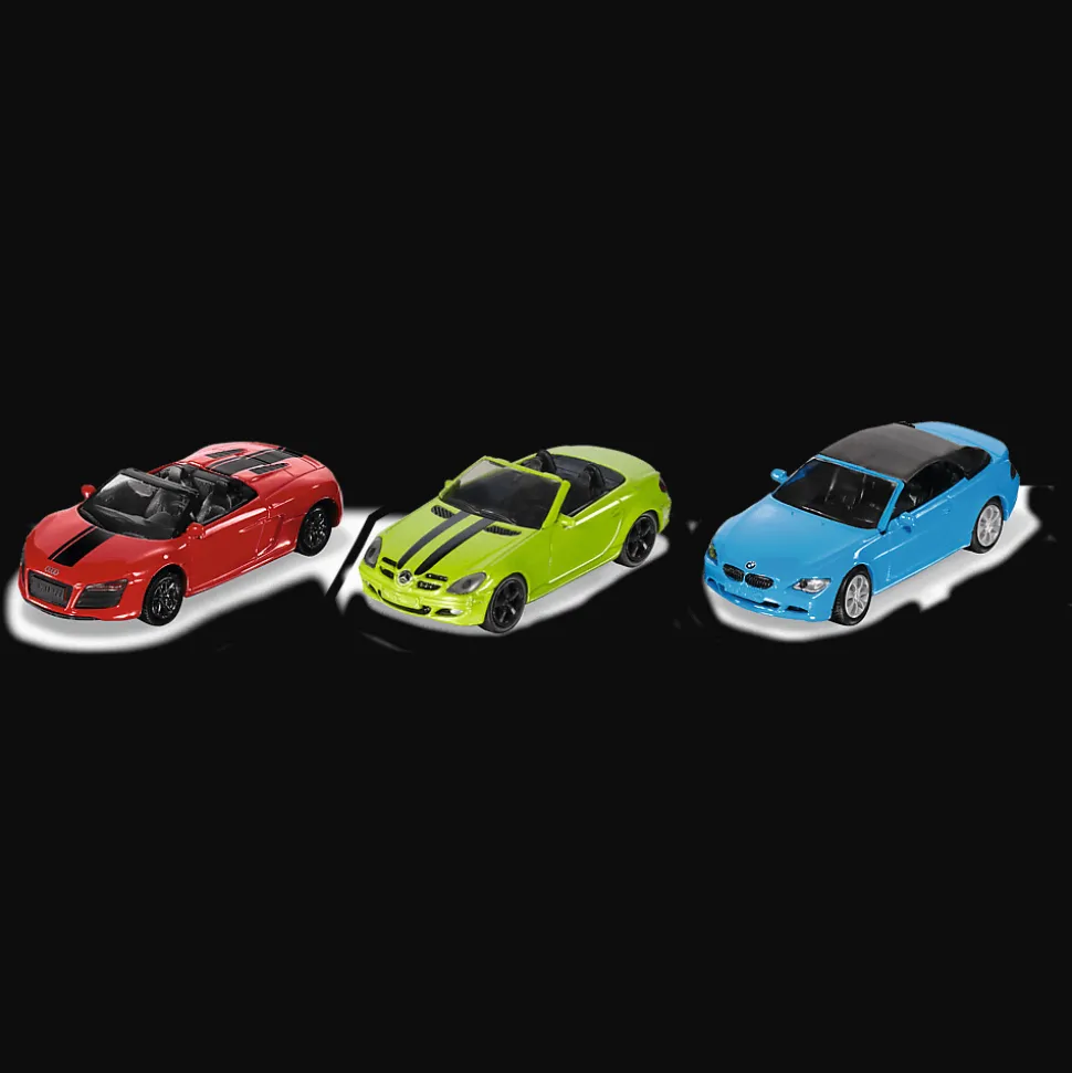 Zestaw kabrioletów zawiera 3 auta: Mercedes SLK, Audi R8 Spyder oraz BMW 645i.