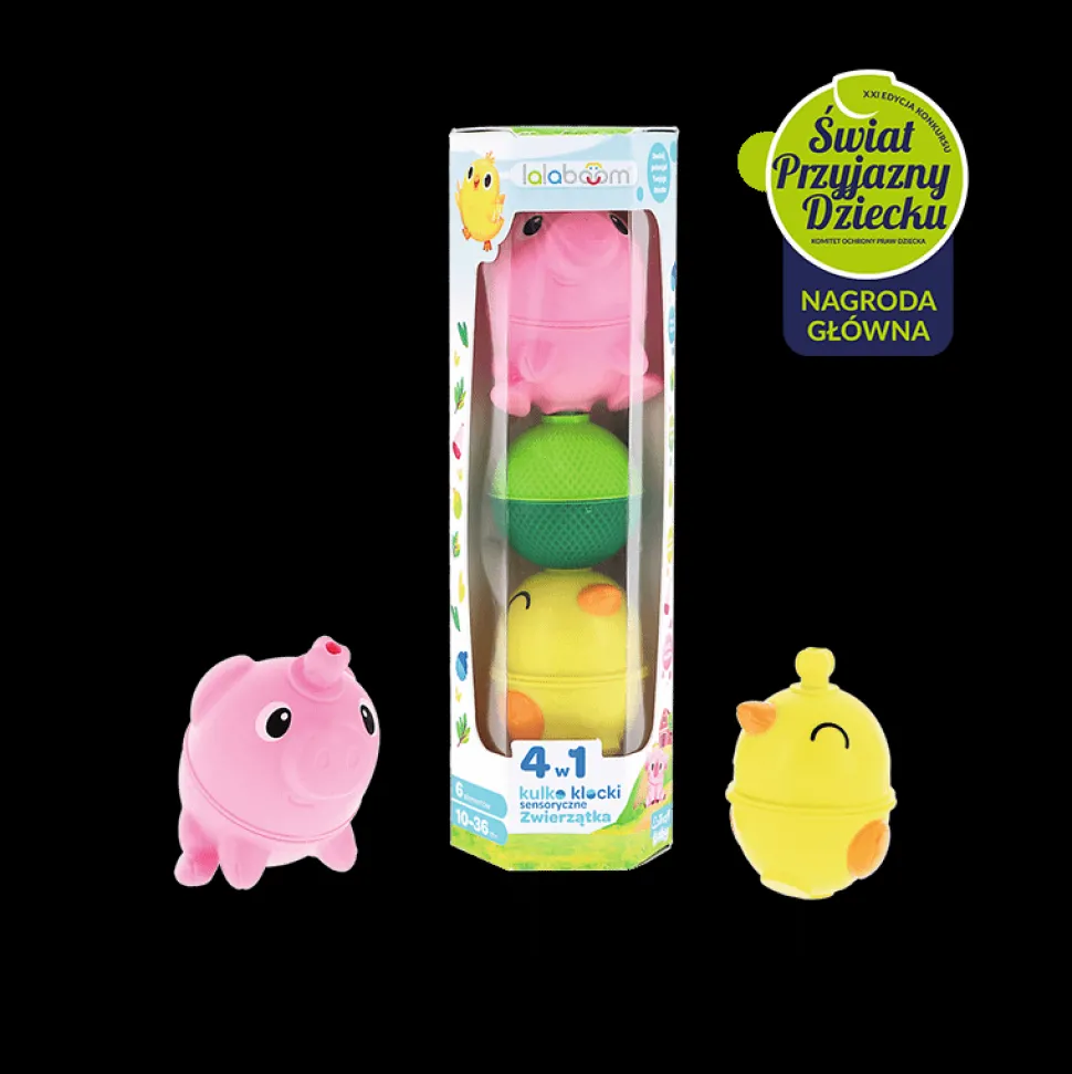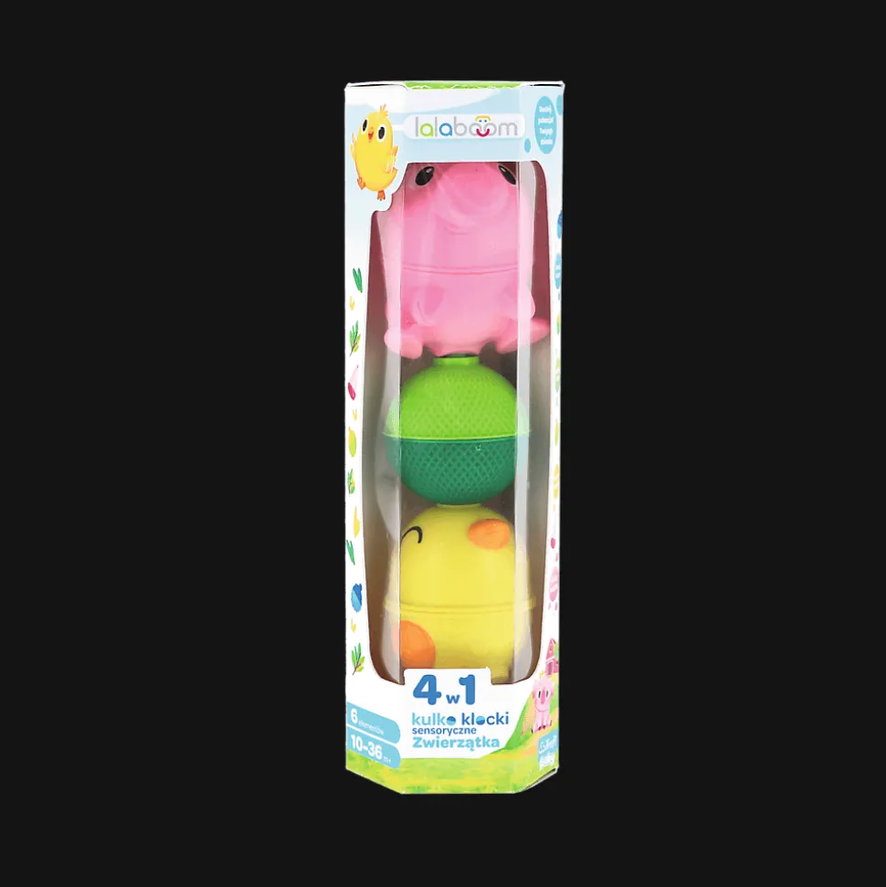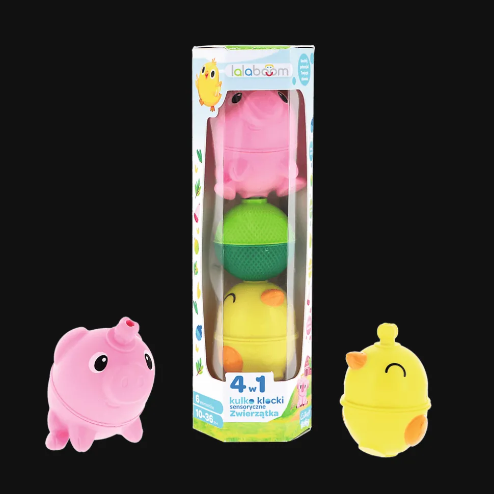 Zestaw kulko-klocków – zwierzątka farma: świnka, kurczaczek – 6 elementów to edukacyjna zabawka preznaczona dla dzieci od 10. miesiąca życia. Zestaw Lalaboom to nie tylko dobra zabawa, ale również wartościowy rozwój od najmłodszych lat. W opakowaniu znajdziesz 6 elementów, które można łączyć, rozdzielać, skręcać i rozkręcać.