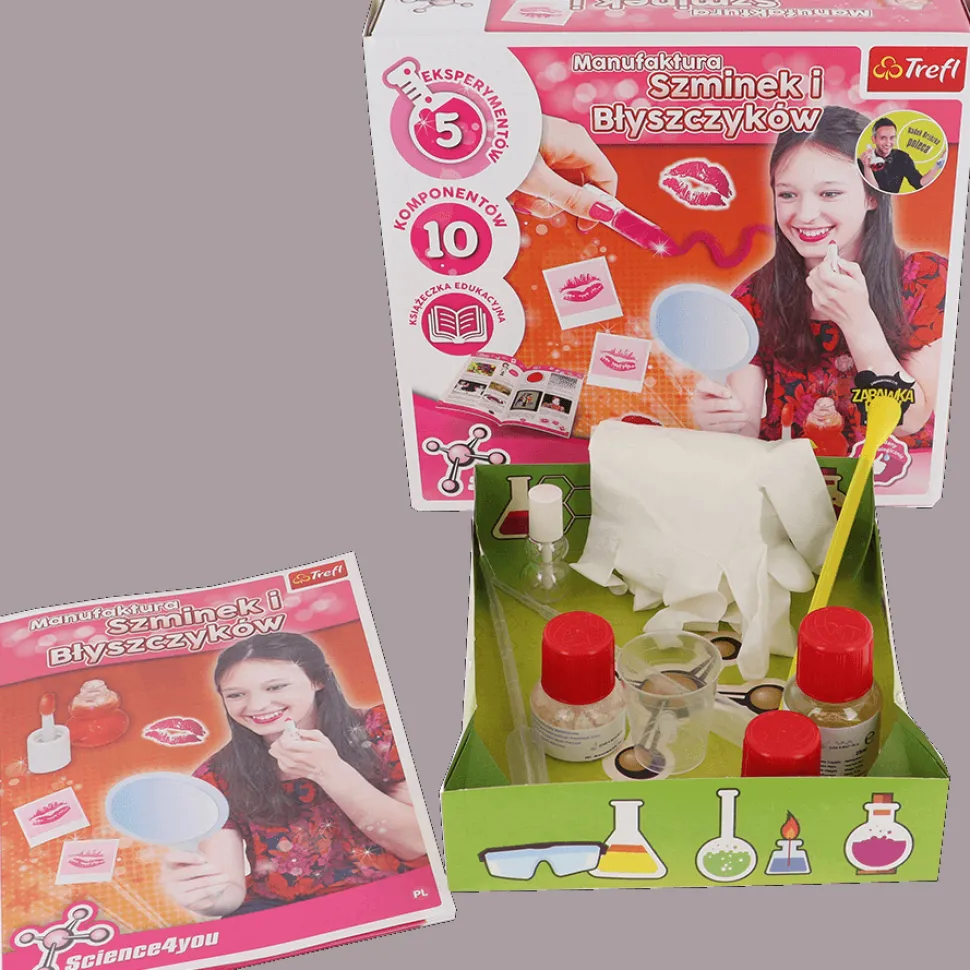 Zestaw Manufaktura szminek i błyszczyków od Science4You zawiera 5 eksperymentów. Dowiedz się czym są zmysły, jaka jest podstawowa paleta kolorów i czym są stany skupienia. Te wszystkie elementy składają się na powstawanie szminek i błyszczyków! Poznaj historię powstania szminek. Stwórz własne kolorowe i pachnące szminki oraz błyszczyki. Do wykonania 5 eksperymentów.