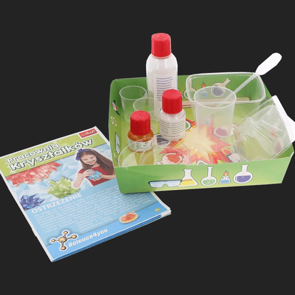 Pracownia kryształków to zestaw naukowy dla dzieci od Science4you, z którym wcielisz się w rolę naukowca i stworzysz kryształy ałunu potasu! Dowiedz się, jak zrobić krystaliczną gwiazdę, krystaliczne jajka oraz prześliczny naszyjnik z kryształów!